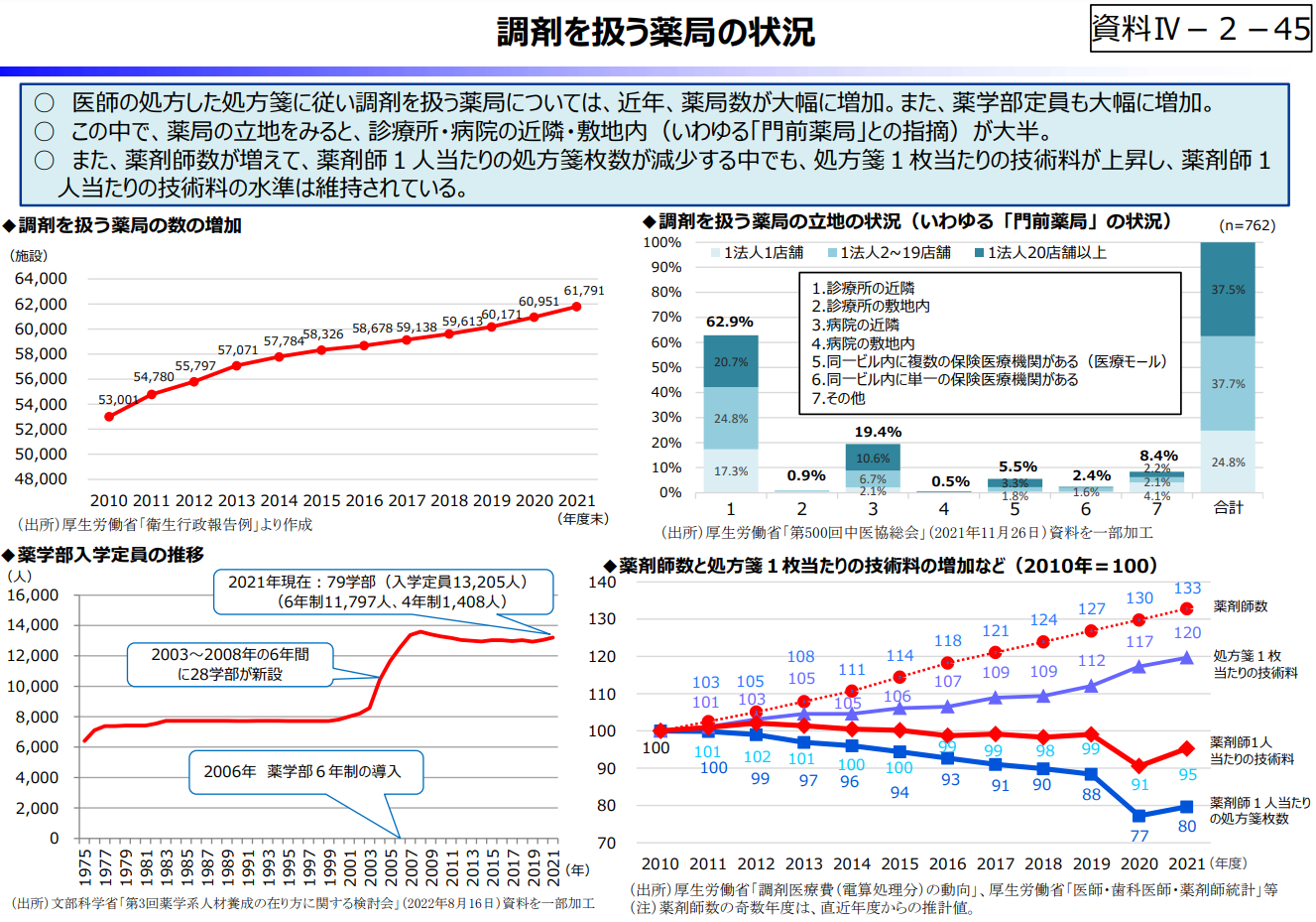 いざ診療所の開業規制が実現されるとなれば、一般的な門前型薬局の開業も伴って少なくなるでしょう。
